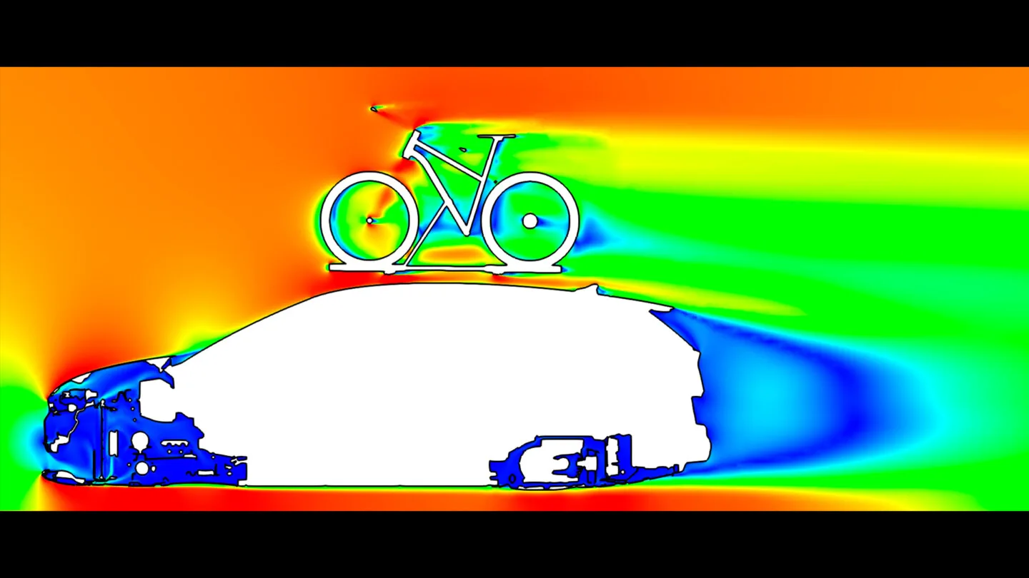 Simulace rozdílu aerodynamiky vozu s nosičem kol na střeše