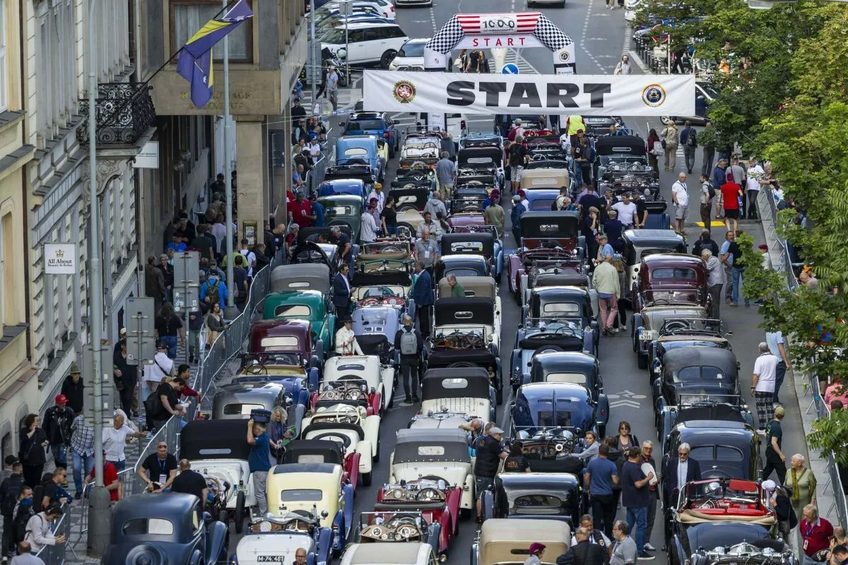 1000 mil československých | závodní depo v Opletalově ulici před startem